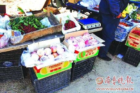 日照一水果攤前,等待出售的蘋果。 本報見習記者 冷炳豪 攝