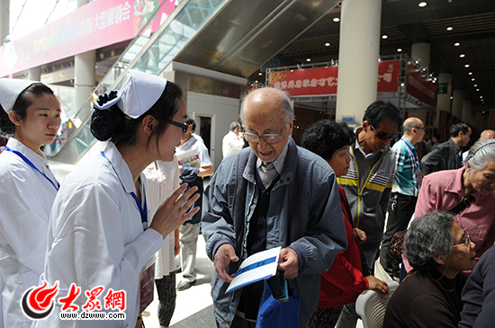 護(hù)理人員現(xiàn)場(chǎng)為老人講解護(hù)理知識(shí)