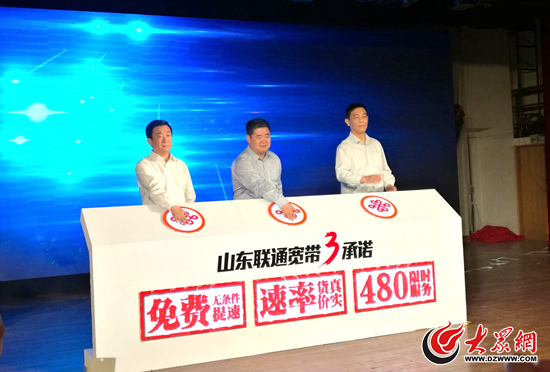 發布會上,山東省通信管理局局長林樂虎、山東省工商局副巡視員孫樹森、山東聯通總經理趙玉軍共同啟動山東聯通寬帶“三承諾”。