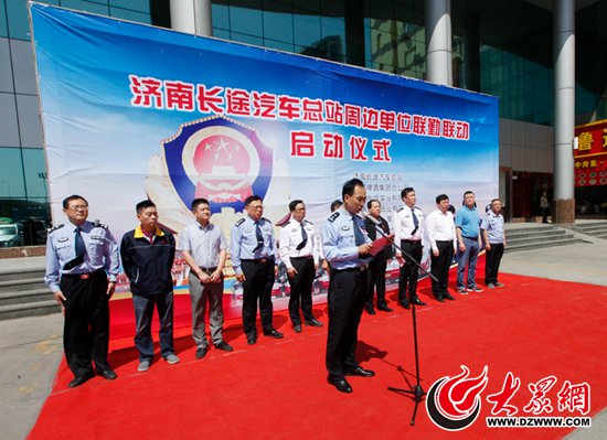 5月17日,濟南天橋警方舉行濟南長途汽車總站周邊單位聯勤聯動啟動儀式。