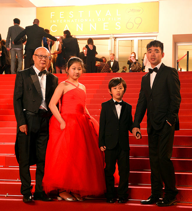 和小演員一同走上紅毯的《灼痛》劇組代表還有導演金華青、制片人劉瑋,熒光燈下,他們和來自世界各地的電影人一起擁抱第69屆戛納電影節,成為山東電影人的驕傲。據金華青透露,作為入圍戛納短片單元的《灼痛》,是他和齊魯影業合作以來第二部參展戛納的劇情片。第一部影片《英秀》曾在上屆戛納電影節上亮相,主演史智恩也幸運的走上紅毯,并成為中國第一位亮相戛納的童星。