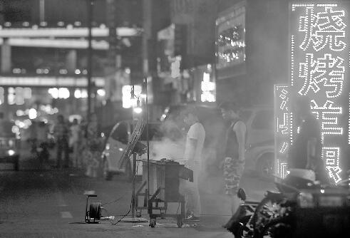 “每年夏天開始,水屯路就是一條‘煙霧街’,一到晚飯時間,道路中段煙霧縈繞,能見度差,有人騎車經過附近就像一頭鉆進‘大霧’,車速快容易出現交通事故。”家住附近的李先生說,晚上出去散步半個小時,身上就能沾滿燒烤味。幾年來他曾多次向有關部門反映露天燒烤影響居民生活一事,“曾經治理過一小段時間,但沒什么效果。”