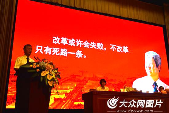 山東省委常委、宣傳部長孫守剛主持報告會。(記者 王宗陽 攝)