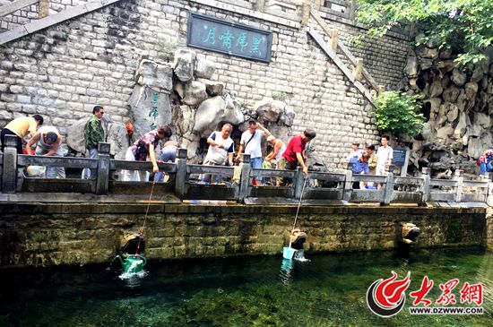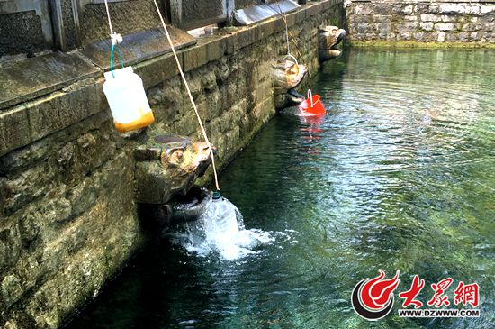 黑虎泉復噴后,市民在打水。 記者 孫博洋攝