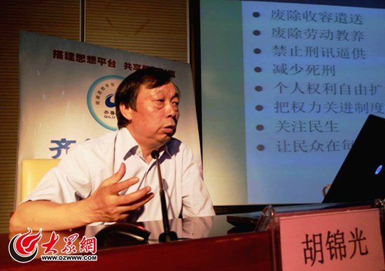 中國憲法學研究會副會長、中國人民大學法學院教授胡錦光做客齊魯大講壇第120期,圍繞“社會公共治理與法治思維做演講。”