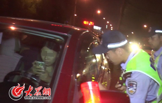 女司機拒不配合檢查,在車內(nèi)不停的打電話。