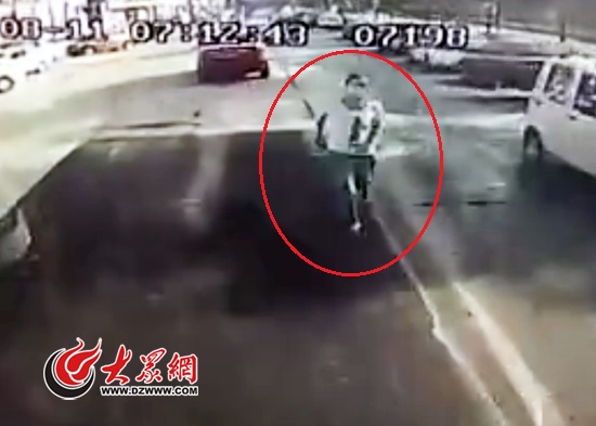 而就在事發(fā)前不到5分鐘,顧某某還曾在事發(fā)點以北約50米的地方險些被一輛出租車撞倒。路邊一家商戶的監(jiān)控視頻顯示,當時她在西濼河路西側跑著橫穿馬路,似乎沒有注意到一輛正常行駛的出租車。就在快要撞上時,出租車急剎車停下,顧某某扶在了出租車前引擎蓋上。