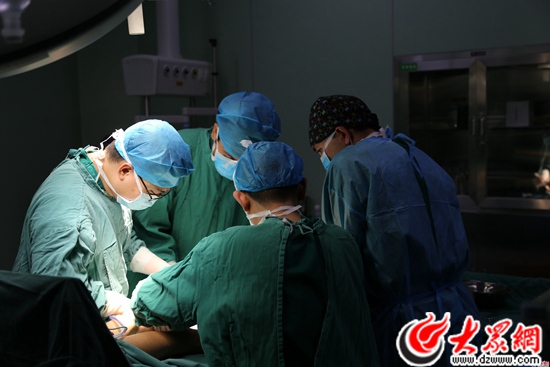當(dāng)?shù)蒯t(yī)院醫(yī)護(hù)人員與山東醫(yī)療專家一起進(jìn)行手術(shù)。