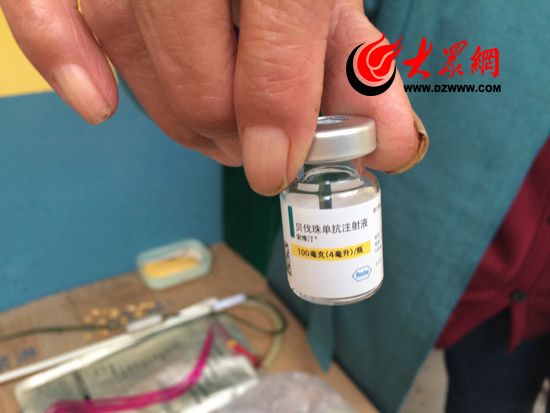 李老漢老伴向記者展示了李老漢正在注射的進口藥,這一小瓶5000多元。