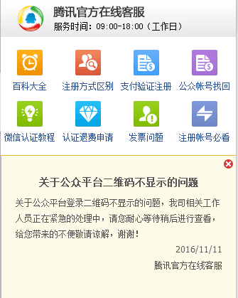 “雙十一”按說是淘寶堵,微信公眾平臺這是腫么了?關于公眾平臺二維碼不顯示的問題,騰訊官方在線客服回應稱,該公司相關工作人員正在緊急的處理中,請用戶耐心等待稍后進行查看。