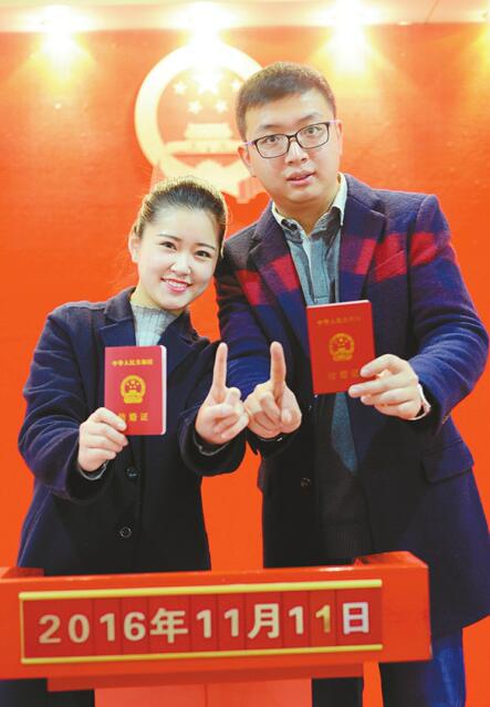 11日,不少人選擇在這一天登記結婚,告別單身生活。 記者王鋒 攝