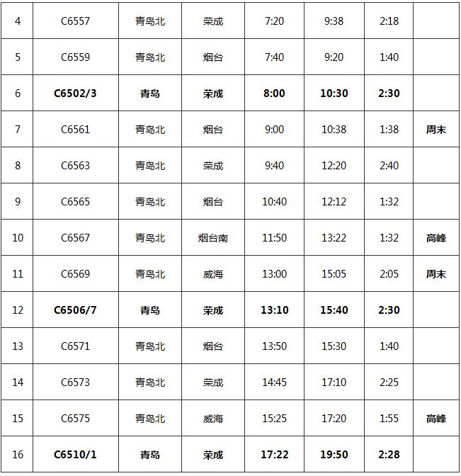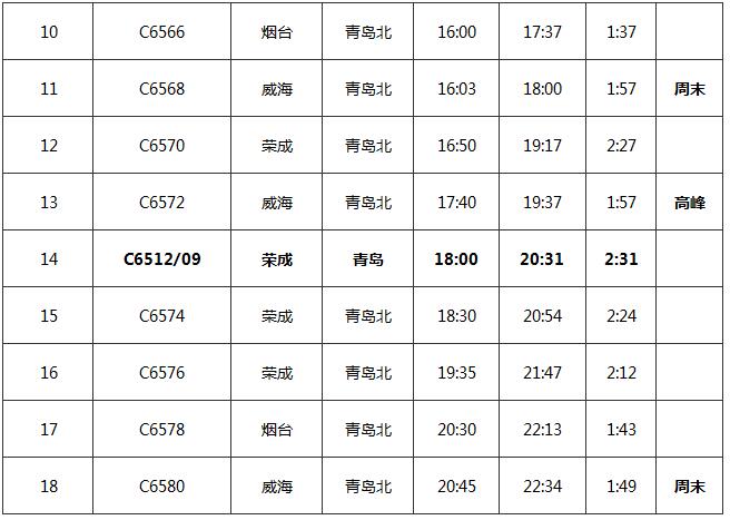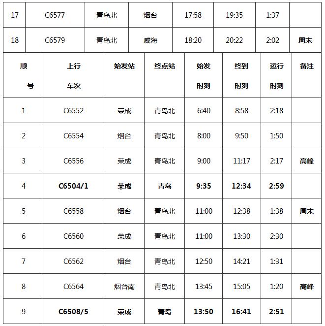 附:青榮城鐵具體開行車次