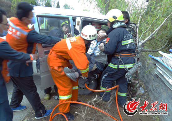 副駕駛被卡在車內(nèi)動彈不得,經(jīng)消防人員破拆從車里出來時已經(jīng)腿部骨折。