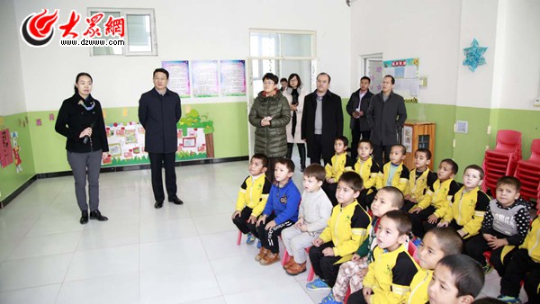 周杰華一行在山東援建的疏勒縣第二雙語幼兒園考察我省援疆工作。