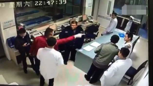 據網友@Vincent 乜爆料視頻顯示,12月3日晚上22點44分左右,幾名男子在東平縣人民醫院急診科里對著一名男醫生吵鬧,一名身穿紅色羽絨服的男子抓著醫生的衣服把醫生從椅子上拽起來,另一名男子出示疑似警官證的證件,并用執法記錄儀對著醫生拍攝。視頻長約3分鐘。