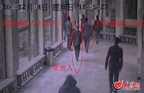 12月4日上午,犯罪嫌疑人張某、牛某在山大二院蹲守多時(shí)后,受害人何大媽出現(xiàn),張、牛二人立刻湊上去準(zhǔn)備行騙。