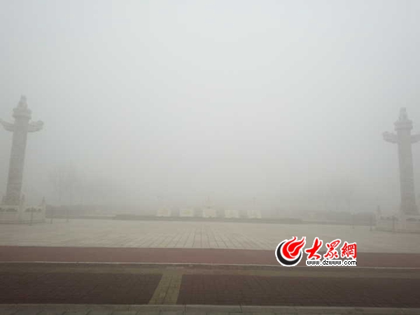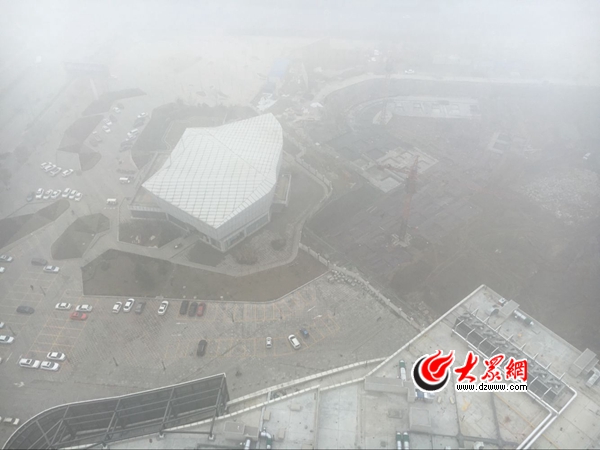 霧霾中的濟寧新世紀廣場