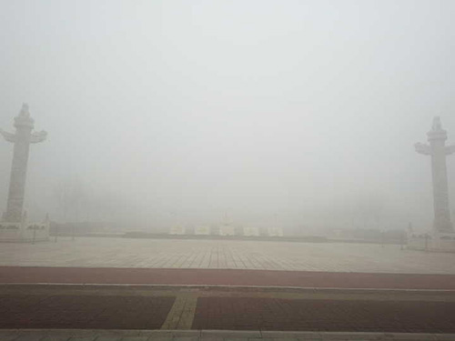霧霾中的濟(jì)寧新世紀(jì)廣場(chǎng)