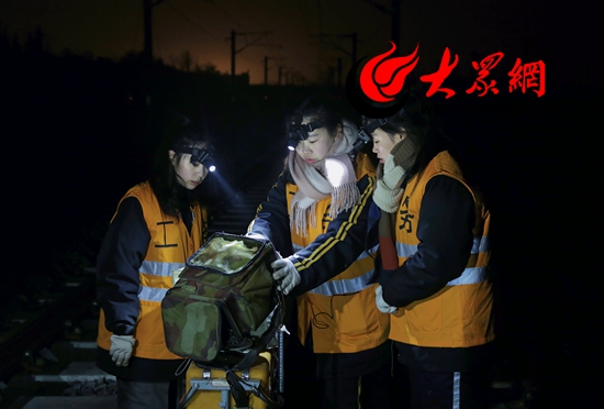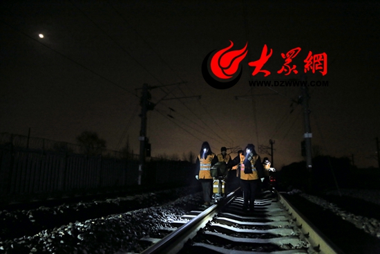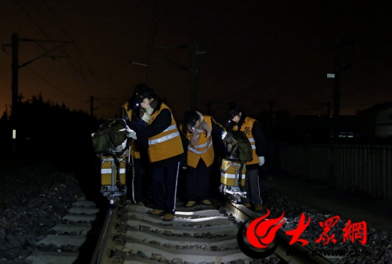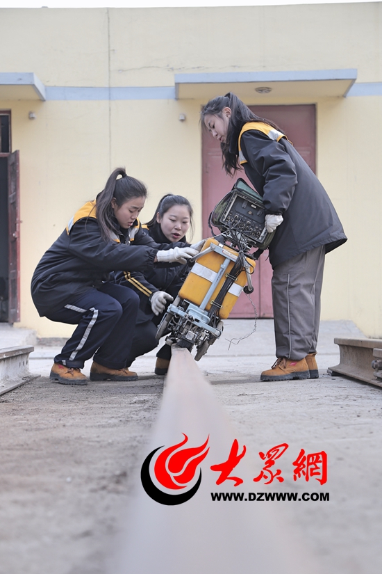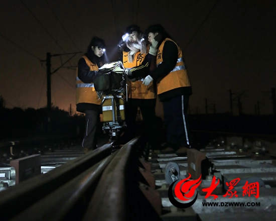 大眾網濟南1月24日訊 在濟南鐵路局,有一個晝伏夜出的特殊工種——鋼軌探傷工。他們每天凌晨“出診”,推著四五十斤重的探傷儀,徒步檢查鐵道線上的每一處道岔和焊縫。今年春運前夕,青島工務段探傷車間加入了三位“鋼軌女醫生”---姜琳、劉艷紅和王蕾。這三位平均年齡不足23歲的90后姑娘,花樣年華不讓須眉,在鐵路工務這個男子漢的天地中,立志當起了“女漢子”。