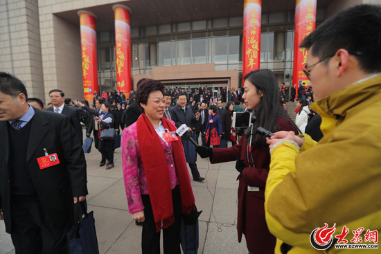 2月6日上午,山東省十二屆人大六次會議開幕大會后,省人大代表滕玉云接受大眾網記者采訪。