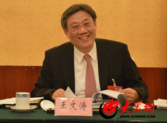 省人大代表、省委常委、濟(jì)南市委書記王文濤王文濤在發(fā)言中三次感謝市民響應(yīng)不放鞭炮成就濟(jì)南“春節(jié)藍(lán)”。(記者 亓翔攝)