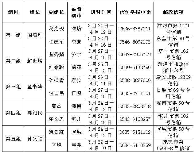 據了解,經省委、省政府批準,山東省成立5個省環境保護督察組,每組負責督察2個市,于3月下旬開始,分別對濰坊市、東營市,濟寧市、菏澤市,泰安市、日照市,淄博市、濱州市,聊城市、萊蕪市開展環境保護督察工作。