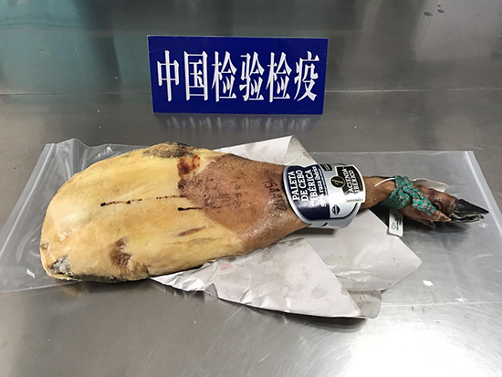 日前,濟南檢驗檢疫局在來自西班牙的郵包中截獲火腿1條,重達5.42公斤。
