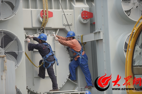 工作人員加緊施工忙碌,濰坊電網將邁進“特高壓時代”。