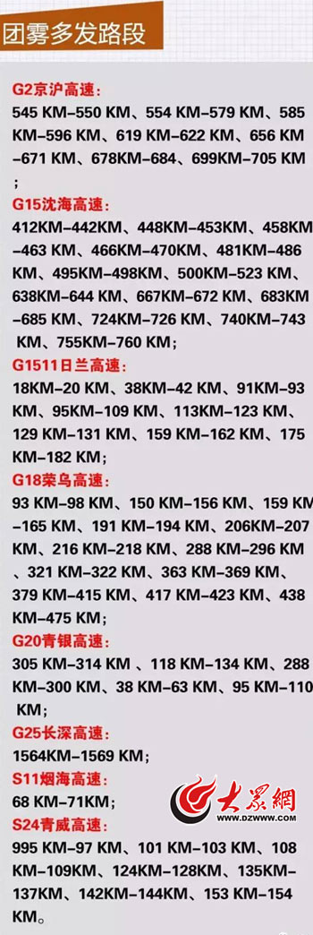 2017年五一假期山東省高速公路易發(fā)團(tuán)霧路段