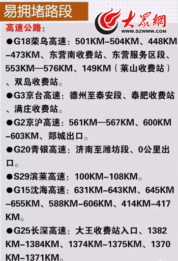 2017年五一假期山東省高速公路易擁堵路段