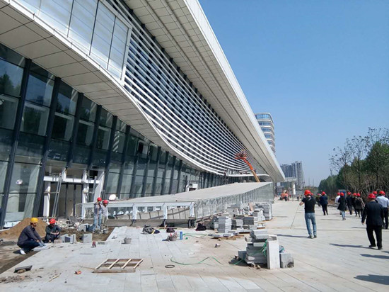 臨沂國際商貿(mào)城會展中心正在進(jìn)行收尾工作,預(yù)計下月就可建成啟用