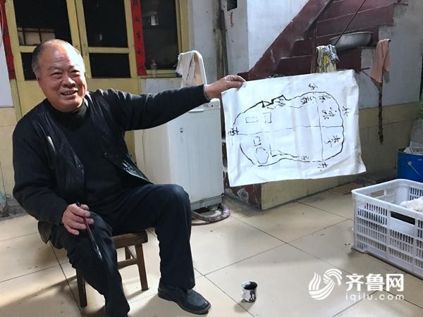 康誦守說,記憶中老明水城只有三個城門,北門是沒有城門的。而現在他的這幅“大作”畫了一個月的時間也即將完成,因為老明水老城里面的東西已基本畫完,就差外圍了。外圍有啥特殊之處嗎?為了能更形象的給記者展示老明水城的模樣,康誦守拿出了紙墨,給我們畫了起來。原來,那個時候的老明水城區(qū)并不是方方正正的,而是像一把斧頭一樣。一會兒功夫,整體老城區(qū)輪廓就畫出來了。老人說,要不是身體原因這幅畫應該是早就能畫完的,如今因為得病留下了后遺癥所以推遲。他笑著要求再寬限幾天。記者臨走,祝福老人能夠早日完成《明水老城墻》的畫作。