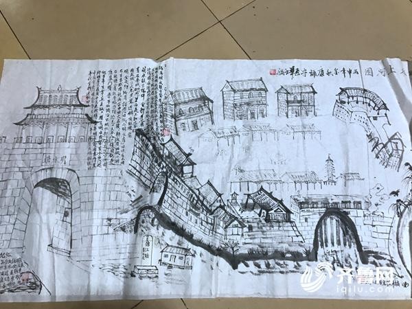 康誦守老人說,如今,章丘老城區(qū)已逐漸消失,他希望能夠把老明水城的樣子通過畫作的形式完全表現出來,能給后人留一個念想,讓鄉(xiāng)愁永遠留在市民心中。
