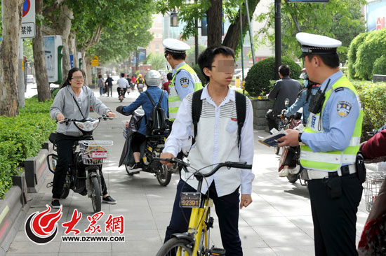 今天,濟南交警歷下大隊組織警力在泉城路查處行人、非機動車闖紅燈、走機動車道等交通違法。