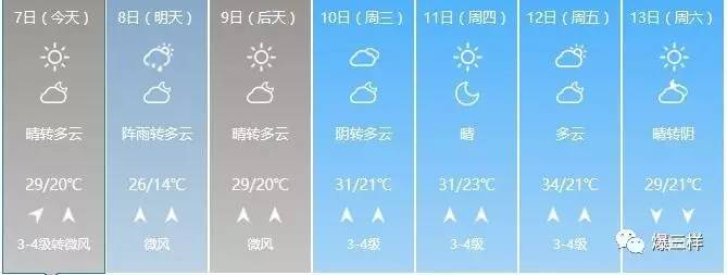 根據濟南市氣象局今天上午11時發布的天氣預報,今天下午到明天晴轉陰,明天下午到夜間有雷陣雨,明天最高氣溫26℃左右。9日多云轉晴,最高氣溫29℃左右。10日晴轉陰,南風2~3級逐漸增強到3~4級,最高氣溫31℃。11~13日晴到多云,南風3~4級轉北風2~3級,氣溫持續上升。12日最高氣溫將達到34℃左右。火辣辣的夏天真的要來了。
