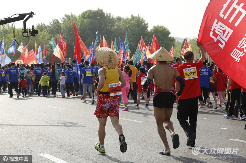 東營2017黃河口馬拉松賽開賽 “變形金剛”“草帽歌”點亮賽道 (/7)