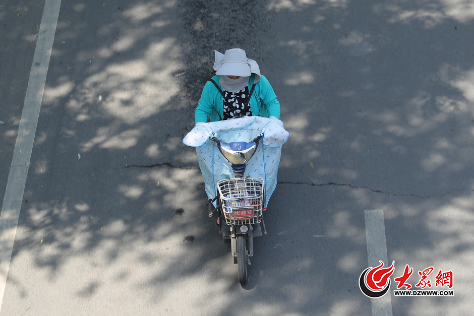 15月27日,濟(jì)南迎來(lái)新一輪的高溫天氣,在烈日的灸烤下,外出的市民紛紛想出各式奇招遮陽(yáng)降溫。據(jù)濟(jì)南市氣象局發(fā)布的消息,26日,發(fā)布今年首個(gè)高溫黃色預(yù)警信號(hào),27-29日濟(jì)南大部分地區(qū)最高氣溫可達(dá)35-36 ,市區(qū)、章丘、濟(jì)陽(yáng)的部分地區(qū)最高氣溫可達(dá)37℃。圖為市民“全副武裝”在高溫下騎車出行。大眾網(wǎng)記者 王長(zhǎng)坤 攝