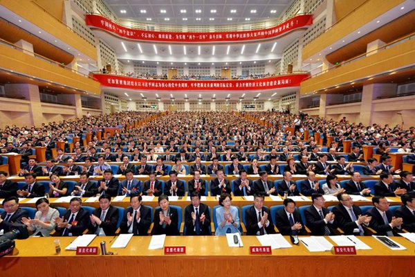 劉家義代表十屆省委向大會作報告 龔正主持大會