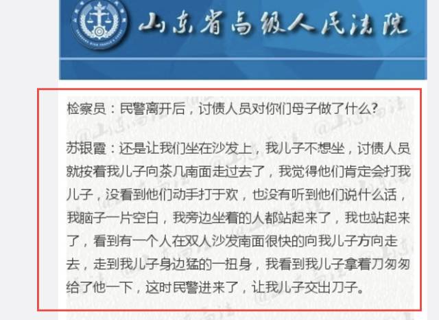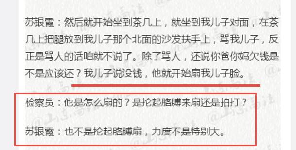 比如,當初最激怒大家的那個“陰莖蹭臉”的說法,就在法庭上被于歡和母親蘇銀霞自己否認了,表示討債者是脫褲子露出了下體,但沒有“蹭臉”的情節。