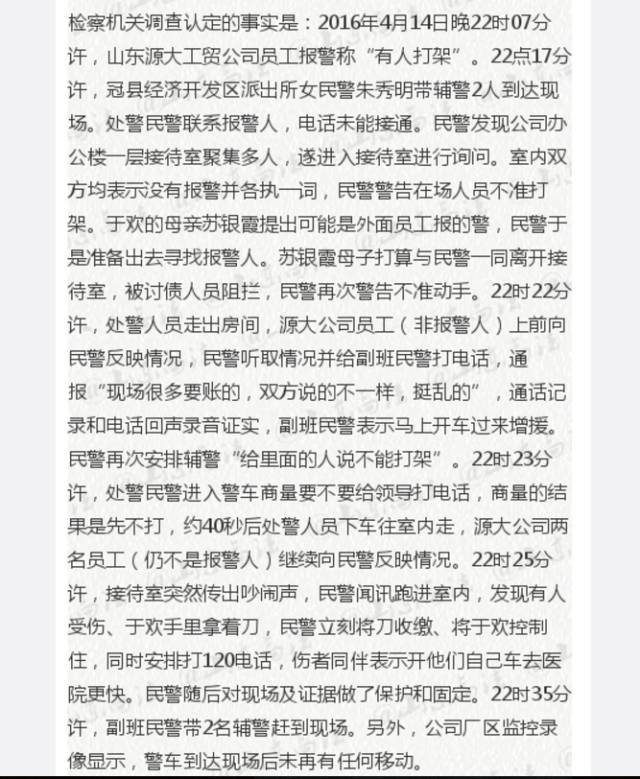 此外,檢方也通過當晚民警的執法記錄儀等證據認定,警方案發當晚并不存在玩忽職守的情況,也不存在丟下于歡母子不管的情況,但對現場的處置存在“不規范”的問題,比如沒有分開當時雙方。
