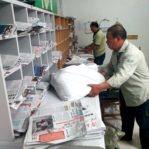 路云海和同事正在分揀報刊