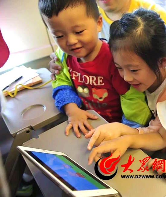 在“復興號”高鐵上,幾位小朋友用無線網絡看視頻,開心不已。