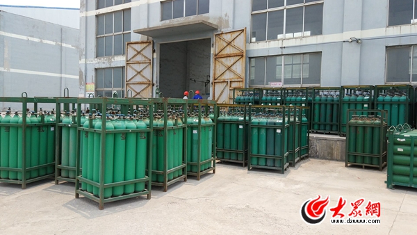 該企業充裝車間外,上百個氫氣瓶露天存放