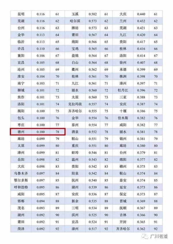 日前,中國社會科學院和經濟日報社聯合發布中國兩岸四地289座城市綜合競爭力排名,德州排在78位。在中國北方地級城市中列入前15名。