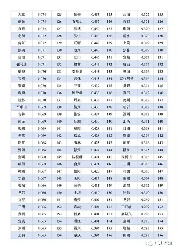 附: 中國289個城競爭力指數