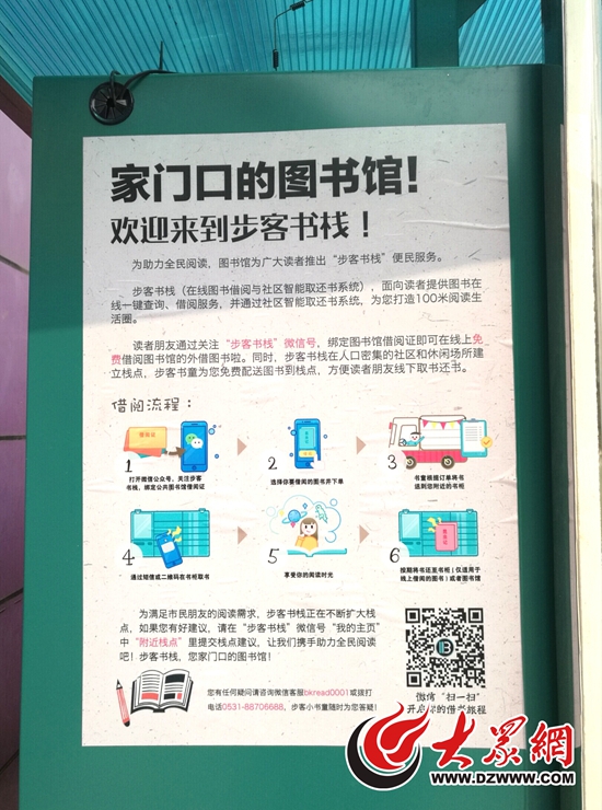 3日上午,記者來到濟南市青少年宮,在主樓正門西側找到了這臺名為“步客書棧”的智能書柜。記者看到,這臺一米多高的機柜可同時容納48個包裹,側面使用說明欄上寫著“家門口的圖書館”的標語。記者體驗后發現,智能書柜操作流程十分簡單,掃碼關注“步客書棧”微信公眾號,綁定山東省少年兒童圖書館的借書證,進入“我要借書”服務板塊,即可面向公共圖書館藏書資源進行查詢和借閱。據“智能書柜”借還書平臺工作人員劉經理介紹,借閱成功后,圖書館工作人員會在24小時內將書籍免費配送至指定柜點,讀者可以像收快遞一樣,輸入驗證碼取出書籍,借閱周期為30天。此外,還書流程也十分方便,每本圖書后都有步客條碼,讀者只要到附近柜點,點擊還書按鈕,掃描步客條碼,將圖書放入柜中即可,整個借還流程完全免費。