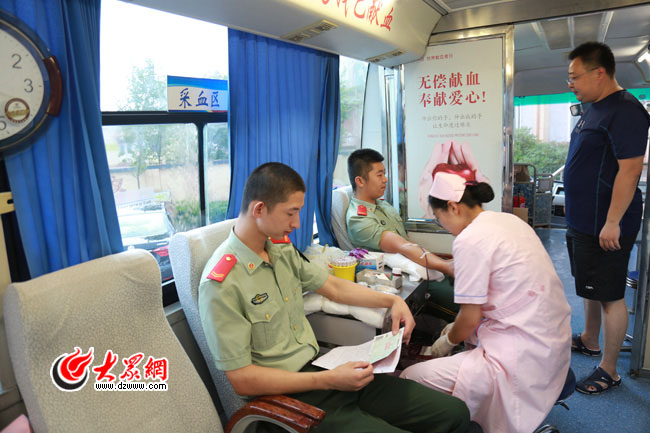 大眾網7月11日訊 11日,山東公安邊防總隊日照邊檢站開展“獻出一滴血·溫暖一座城”主題黨日,30多名黨員官兵積極為日照市中心血站義務獻血,為愛添加一份力量和溫度。
