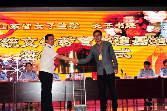 儀式上,省女子監獄相關負責人在致辭中高度贊揚了夫子書院懷揣強大的社會責任感,用建立教育基地的方式,將學院豐厚的教育資源送到高墻內,用傳統文化教育幫助服刑人員教育改造。夫子書院創始人王永豪在致辭中,強調了女性在傳統文化傳承中責任擔當和維系家庭、社會和諧穩定中的作用,介紹了女德在女性優秀品質中的主導地位,表達了弘揚傳統文化,助力女性回歸的美好愿望。隨后,雙方簽訂了《傳統文化教育基地共建協議書》并現場揭牌。