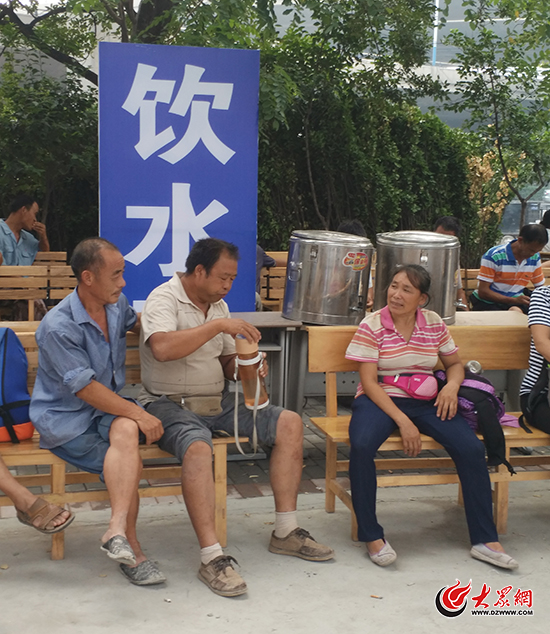 在飲水區,工人們邊等活邊喝水、聊天