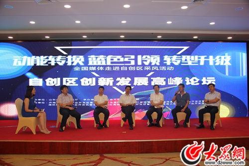 大眾網(wǎng)青島7月27日訊 今天下午,“動能轉(zhuǎn)換 藍(lán)色引領(lǐng) 轉(zhuǎn)型升級”自創(chuàng)區(qū)創(chuàng)新發(fā)展高峰論壇在青島舉行。作為“新舊動能轉(zhuǎn)換看山東”首屆全國媒體走進(jìn)自創(chuàng)區(qū)采風(fēng)活動的最后一站,論壇對部分山東省的國家自主創(chuàng)新示范區(qū)取得的成就進(jìn)行了展示,邀請專家分析、解讀了自創(chuàng)區(qū)發(fā)展思路與重點(diǎn),并圍繞自創(chuàng)區(qū)下一步政策制定、國際合作、發(fā)揮引領(lǐng)作用等問題舉行了圓桌沙龍會。